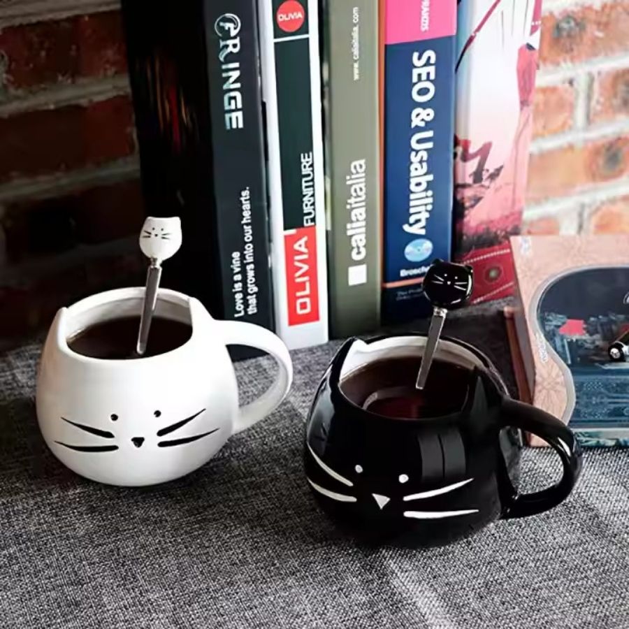 Cốc còn đi kèm muỗng hình con mèo bằng inox bền bỉ, hạn chế bị gỉ vì thế nâng cao được tính thiết thực của chiếc cốc. Cốc mèo đáng yêu bằng gốm handmade được làm từ chất liệu gốm cao cấp và được nặn thủ công, an toàn cho sức khỏe người sử dụng.